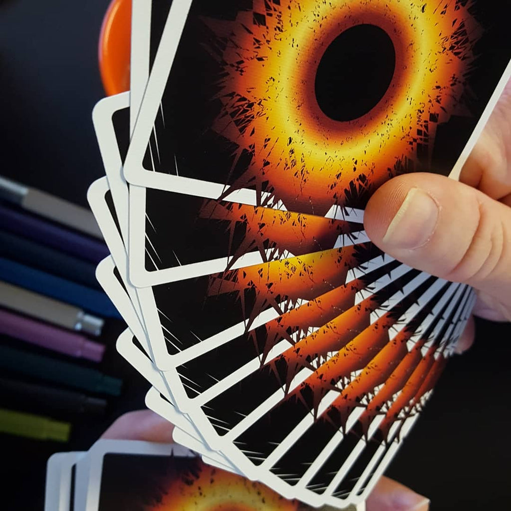Singularity's sophomore set, dressed to the nines! Classy playing cards inspired by the First Image of a Black Hole, taken by the EHT Collaboration in 2019.