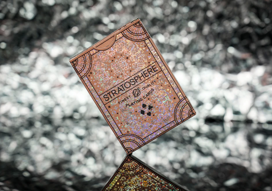 Unlike any other deck on earth, STRATOSPHERE - METEORITE EDITION showcases the future of playing card technology. Like a meteor entering earth's atmosphere, this deck features an all new holographic full foil that reflects and shimmers from any angle. We hope you were able to pick one up when they landed, so you can discover the cosmic sparkle with your own eyes.