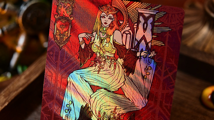 Odin deck (Limited 1000 decks worldwide, printed by KSPC), Odin, the Allfather in Norse mythology, is the wise and powerful god of war, wisdom, poetry, and magic. He sacrificed an eye for knowledge and rules Asgard with his ravens Huginn (Thought) and Muninn (Memory). A central figure in Viking lore, he seeks wisdom to prevent Ragnarok.